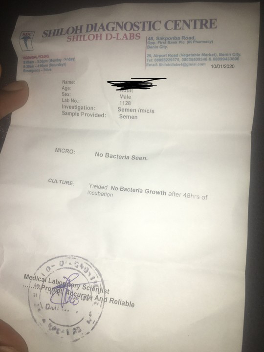 I started experiencing pus coming from my penis two years back before I got married. I took some over the counter drugs but there was no improvement. So I went to the hospital when I carried out some tests with my urine and sperm. The result indicated heavy growth of staph and gonorrhoea.